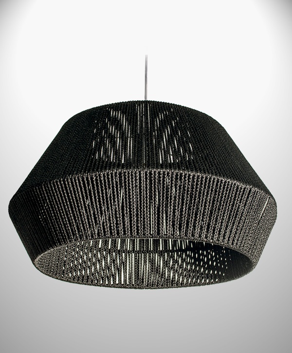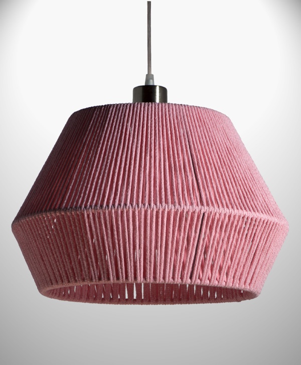 Lámpara colgante realizada en tejido artesanal.