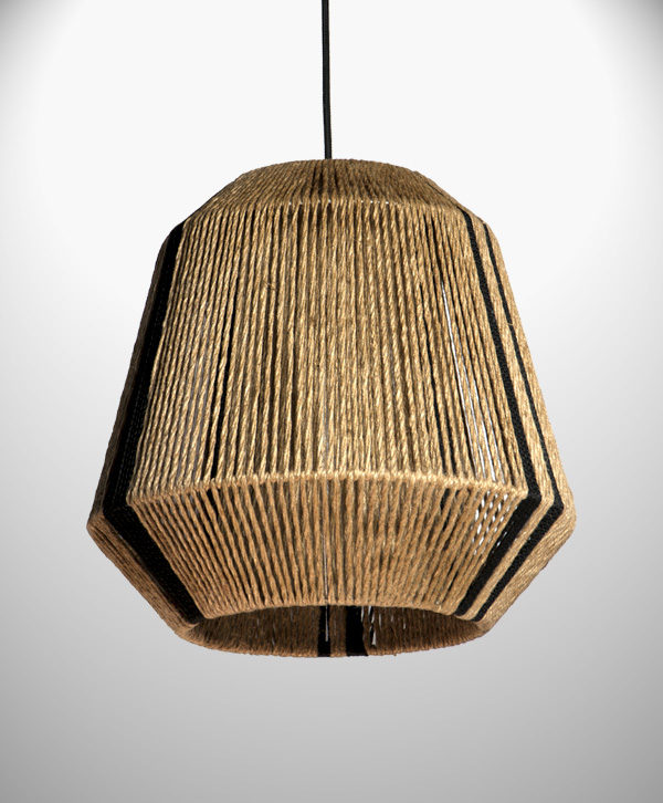 Lámpara colgante realizada en tejido artesanal.