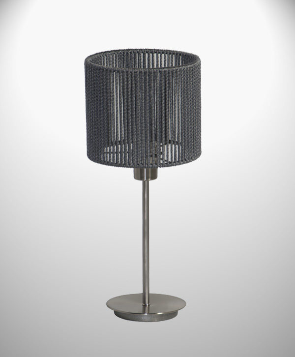Lámpara de mesa realizada en tejido artesanal. Pie platil.