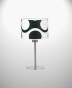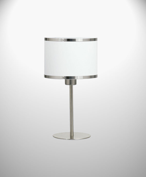 Velador realizado en tela con / sin flejes en acero y teminaciones en bies o cromo. Pie platil.