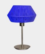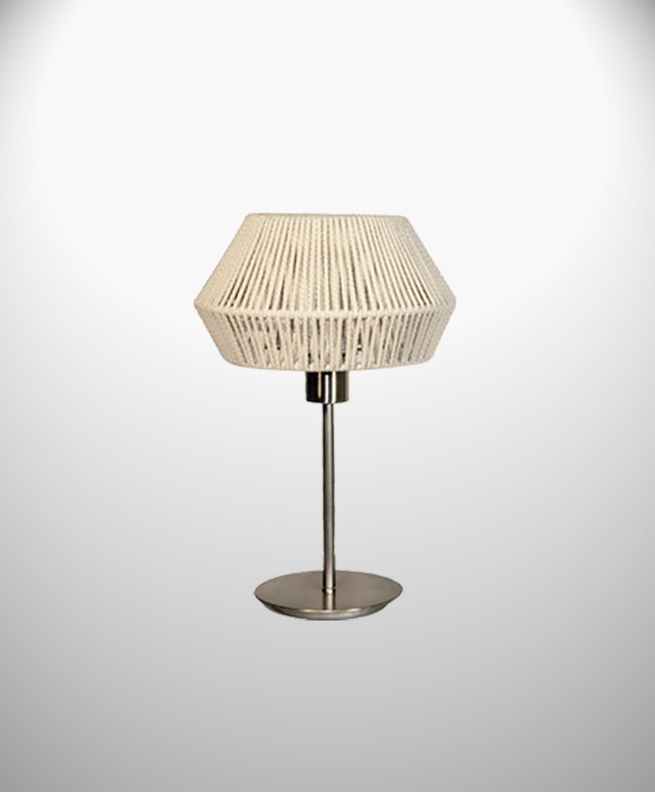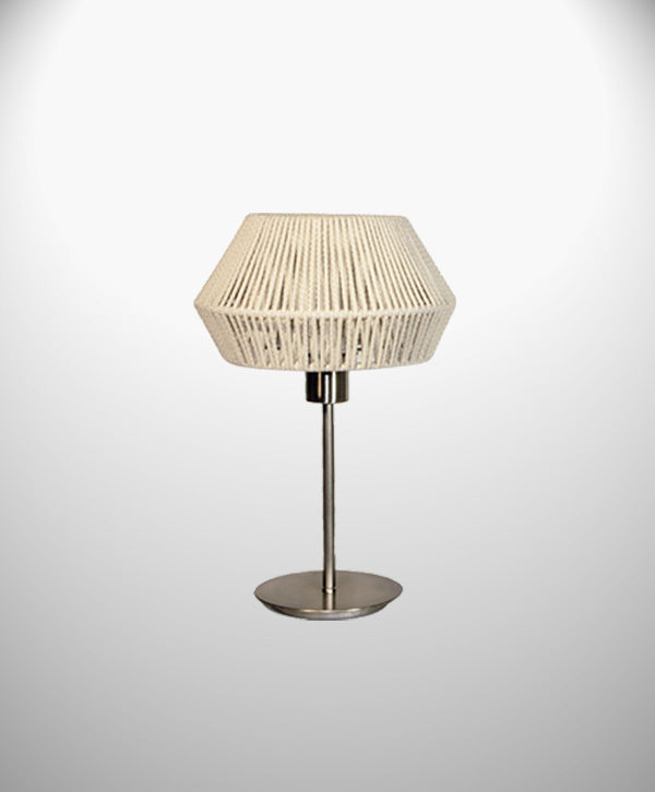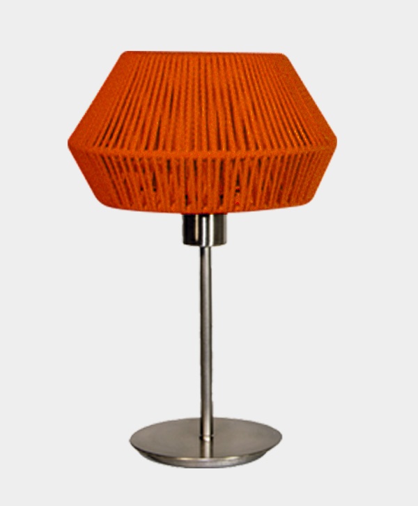Velador con pantalla realizada en tejido artesanal. Pie platil.